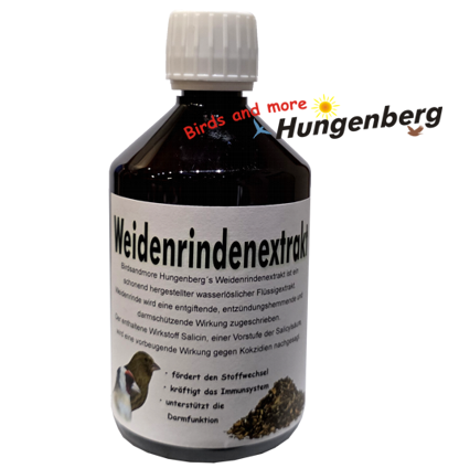 Gebrauchshinweise: 2Teelöffel Birdsandmore Hungenberg´s Weidenrindenextrakt auf 1Liter Trinkwasser.